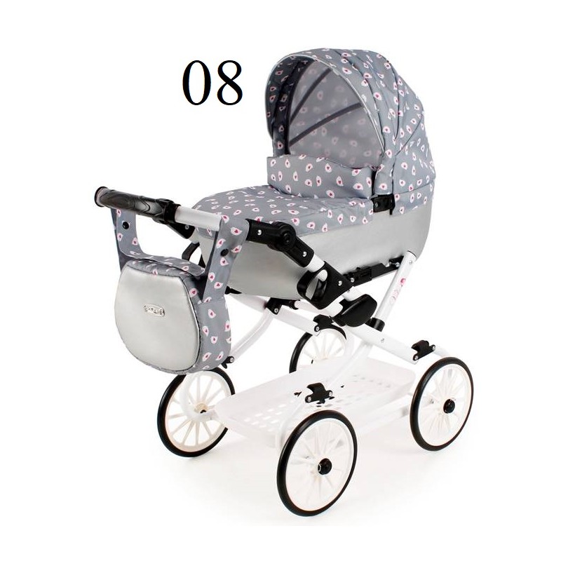 Dwustronna gondola w wózku Adbor VIKI pozwala prowadzić go przodem lub tyłem, zapewniając realistyczną i komfortową zabawę z lalką.