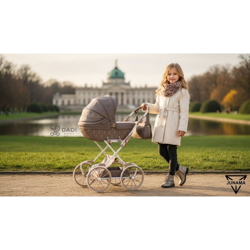 Pozwól swojej córce poczuć się jak prawdziwa mama dzięki Junama Art Deco Mini – wyjątkowemu, polskiemu wózkowi dla lalek w eleganckim, czekoladowym odcieniu beżu 02. Ten wysoki wózek dla lalek to następca dobrze znanego modelu Laret Imperial Mini, łączący klasyczny design z nowoczesną funkcjonalnością i trwałością, z której słynie marka TAKO Baby.
