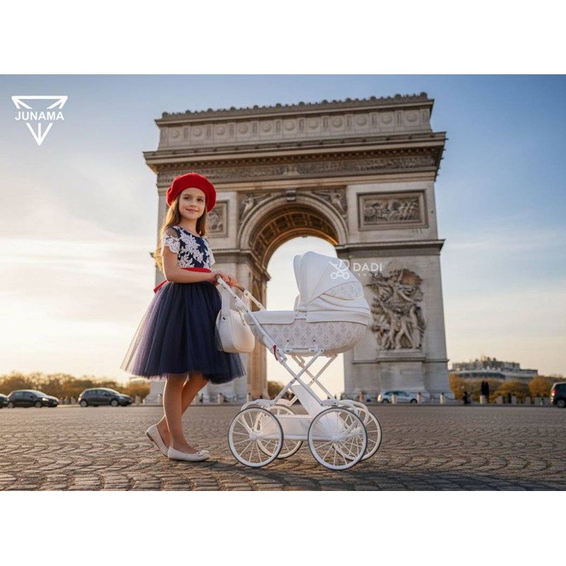 Wyjątkowo piękny wózek dla lalek premium Junama Art Deco Mini – model, który zachwyca wyglądem i jakością wykonania.