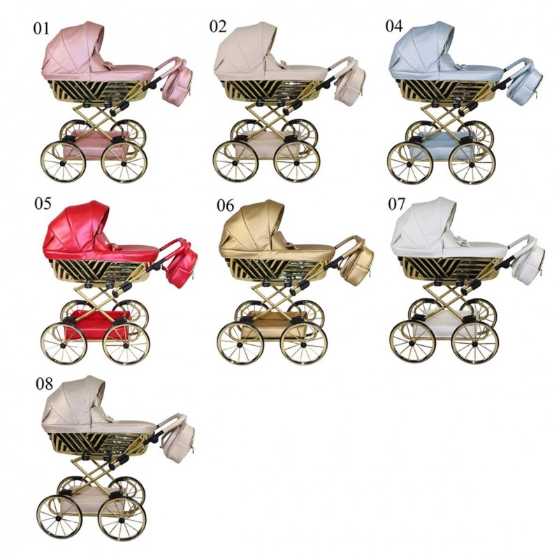 Pozwól małej mamusi odkryć miniaturowy glamour z wózkiem Sojan Royal 06 w pełnym złotym kolorze. Ten bajkowy wózek wygląda jak prawdziwy i robi natychmiastowy efekt wow. Każdy detal, od złotych kół po elegancką gondolę, podkreśla królewską elegancję i sprawia, że zabawa staje się wyjątkową przygodą.