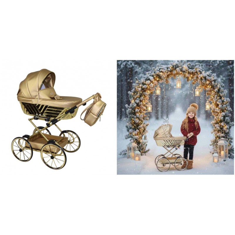 Złoty wózek dla lalek Royal 06 – idealny towarzysz zimowej zabawy na świeżym powietrzu, który zachwyca małe mamusie!