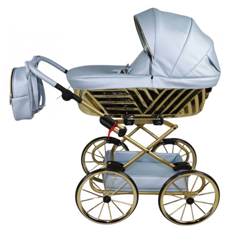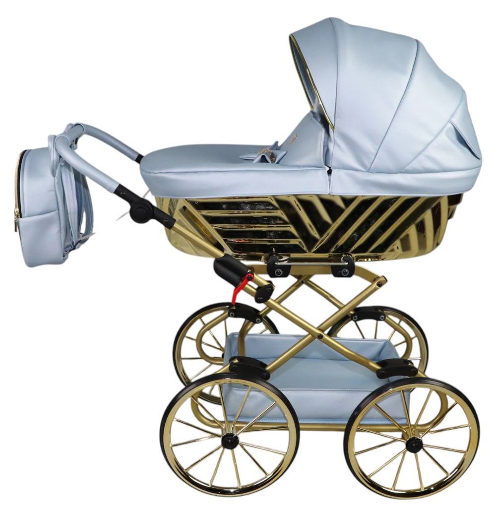 Pastelowy błękit w połączeniu ze złotymi akcentami tworzy wyjątkowo delikatny, ponadczasowy look. Wózek Royal 04 prezentuje się jak mini wersja ekskluzywnych wózków dziecięcych, dzięki czemu każda zabawa nabiera prawdziwego, realistycznego charakteru. To idealny wybór dla rodziców szukających pięknej, estetycznej i jednocześnie funkcjonalnej zabawki dla swojego dziecka.