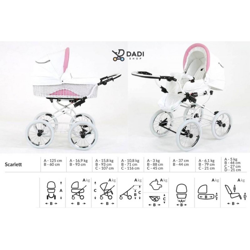 Wózek 2w1 Scarlett to praktyczny wózek na dużych kołach, który zapewnia stabilność i komfort jazdy na każdej nawierzchni. Miękkie zawieszenie zapewnia płynną jazdę, a rama retro gwarantuje stabilność i bezpieczeństwo.