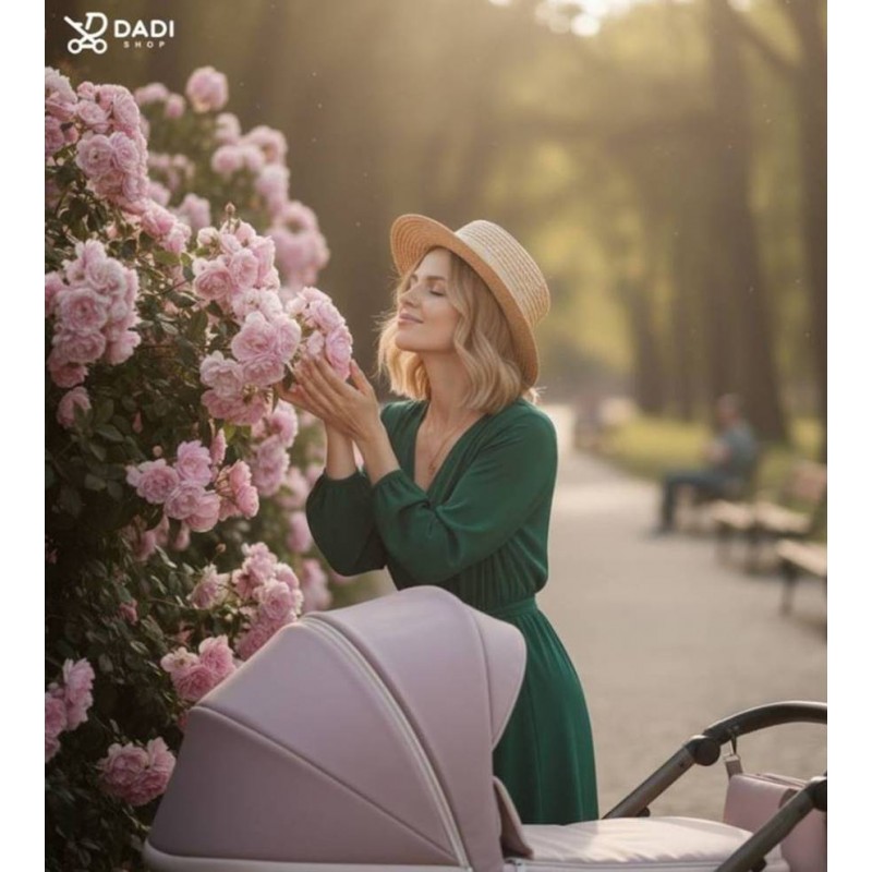 Spacer w różowym odcieniu Rose Dust nabiera wyjątkowego charakteru – wózek Natoni Abis 3w1 łączy elegancję z codzienną wygodą.