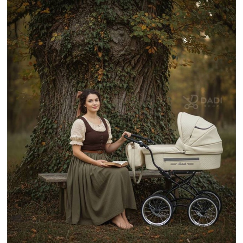 Jasny, delikatny odcień beżu nadaje wózkowi Baby Fashion ISABELL 3w1 wyjątkowego charakteru i lekkości. To kolor, który pięknie komponuje się z klasycznym, retro designem, podkreślając styl retro dla dziecka. Biało-beżowe detale i pikowana tapicerka sprawiają, że każdy spacer staje się elegancki i pełen uroku, a jednocześnie praktyczny w codziennym użytkowaniu. Jasny beż nie tylko wygląda luksusowo, ale także świetnie pasuje do różnorodnych akcesoriów i dodatków dla malucha.