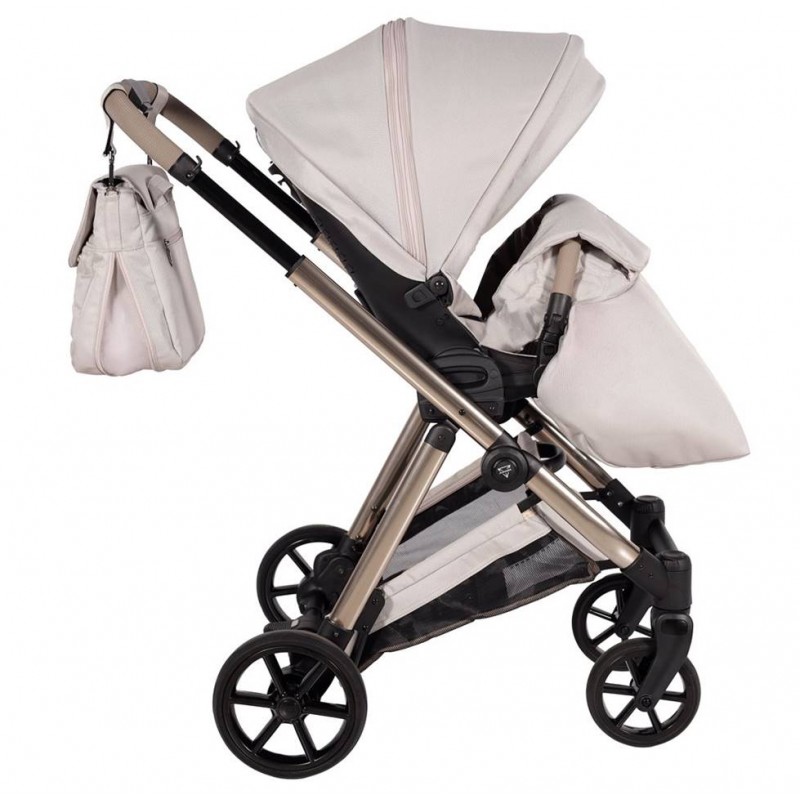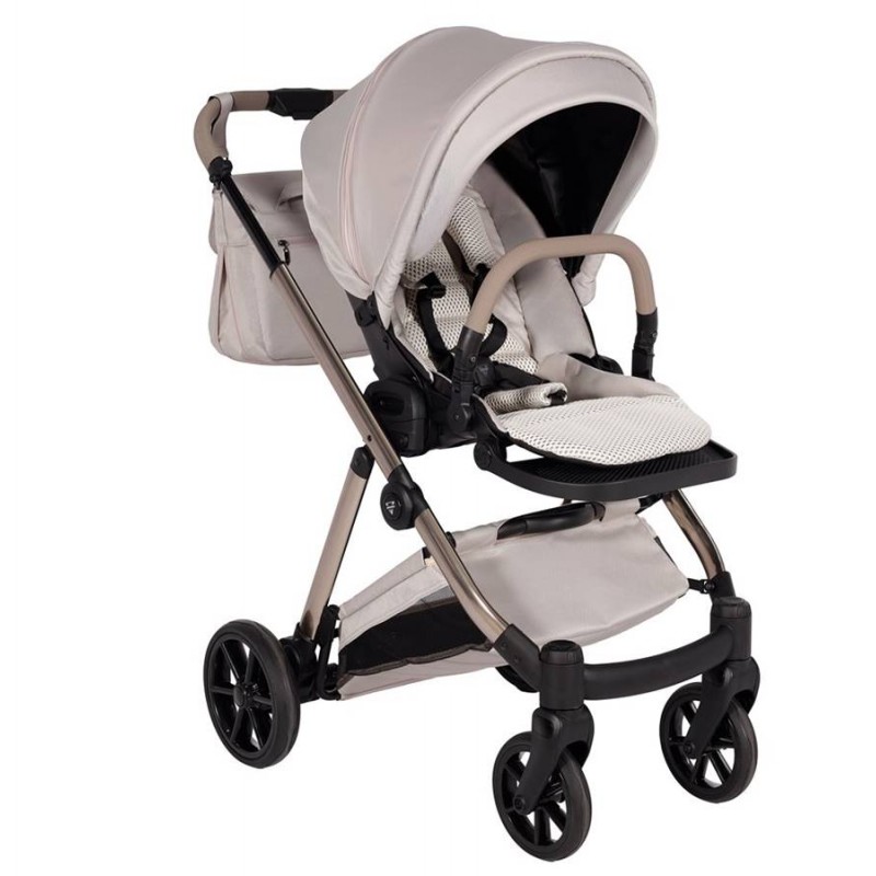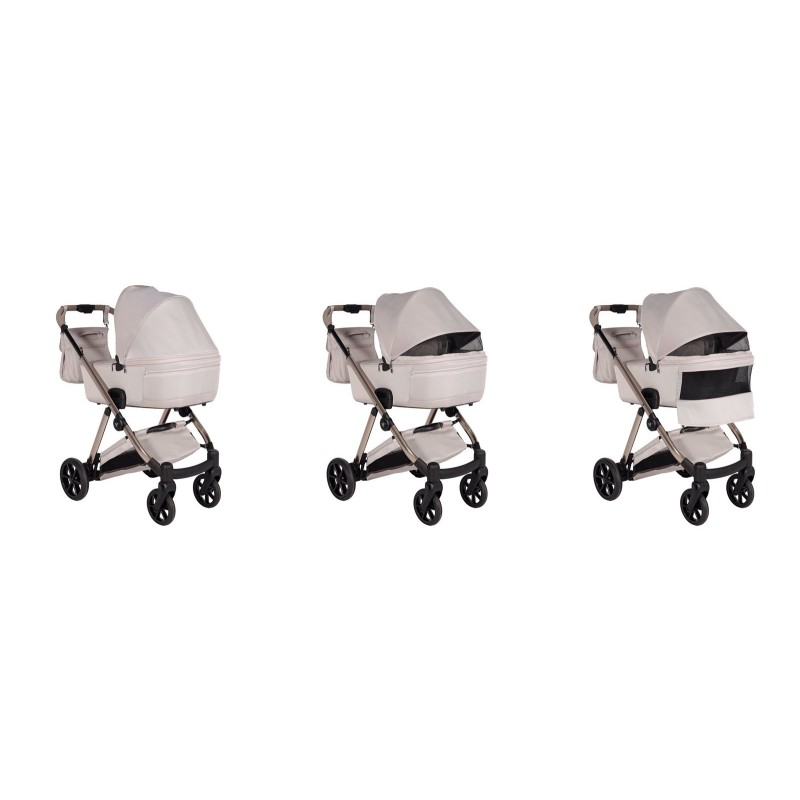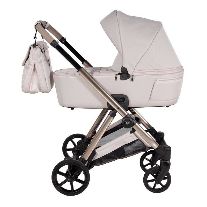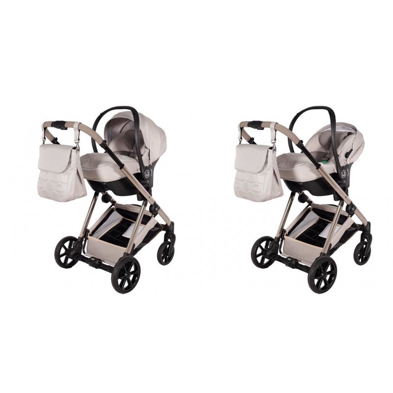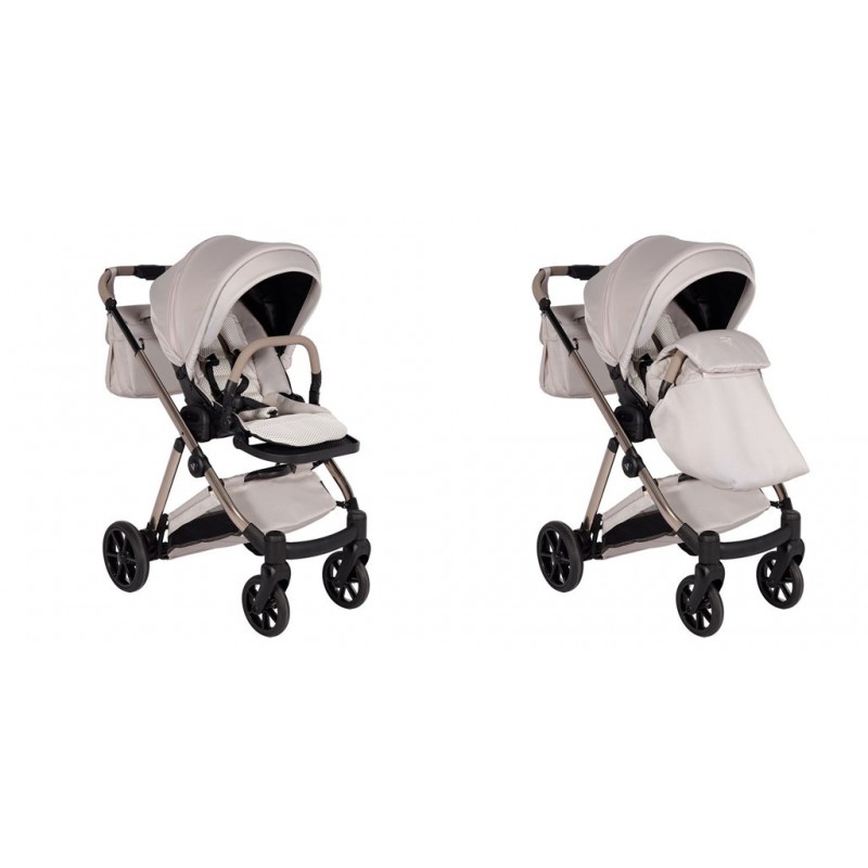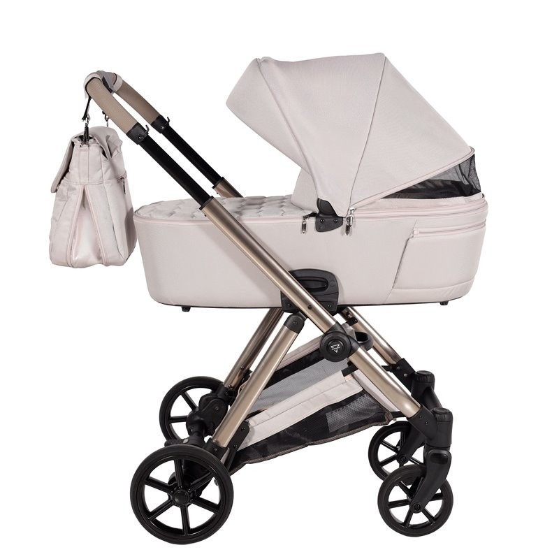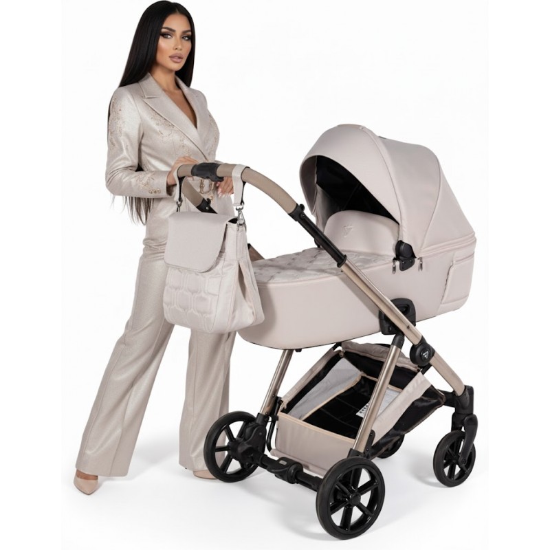 Wózek Elegante zachwyca lekką konstrukcją, podwójną amortyzacją oraz luksusowymi, pikowanymi wykończeniami. Każdy spacer staje się przyjemnością – zarówno dla dziecka, które czuje się komfortowo, jak i dla mamy, która prowadzi wózek bez wysiłku.