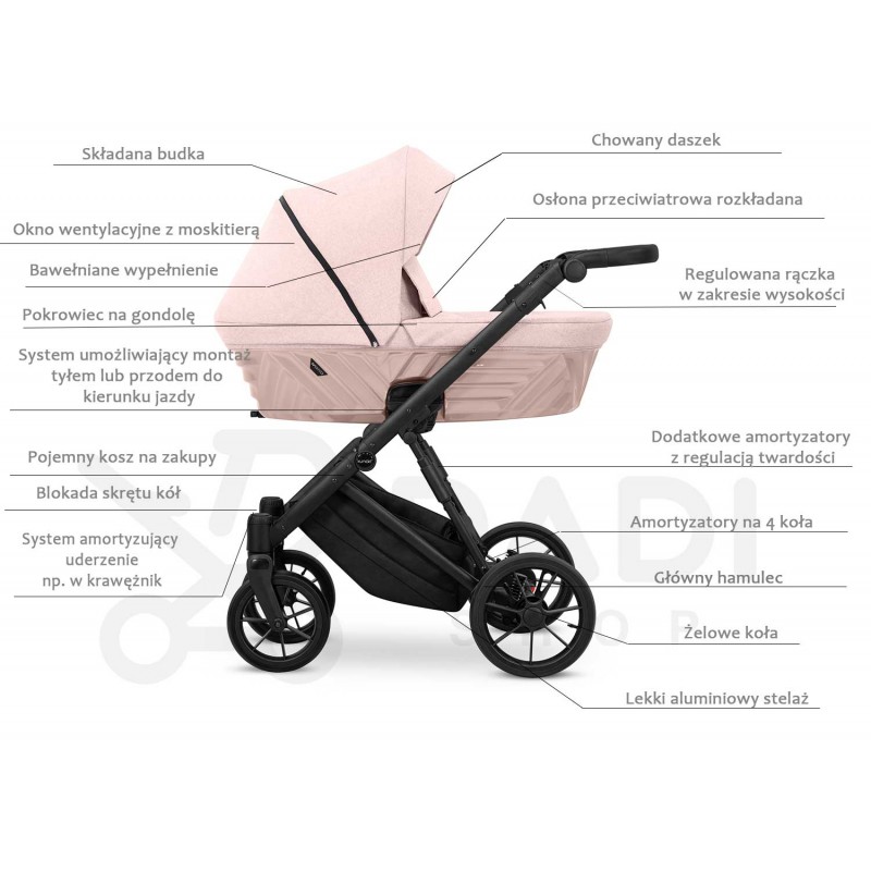 ☑️ Gondola wózka IVENTOnowoczesna gondola z tłoczeniem 3D przestronna i bezpieczna wyściełana miękkim materiałem regulowane oparcie w gondoli unikalny design daszek ochraniający dziecko przed nadmiernym promieniowaniem słonecznym okno wentylacyjne zamykane na zamek błyskawiczny pokrowiec na nóżki