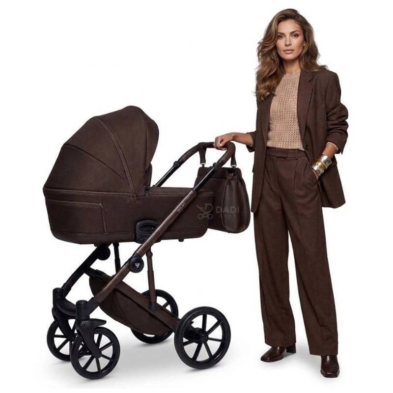Junama Termo Ellegante w głębokim odcieniu Chocolate 05 – elegancki, ponadczasowy wózek, który idealnie wpisuje się w stylowy, monochromatyczny look.