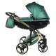 Nowoczesny wózek dziecięcy Junama Diamond Fluo 01 w odcieniu butelkowej zieleni – styl i wygoda na złotym stelażu.