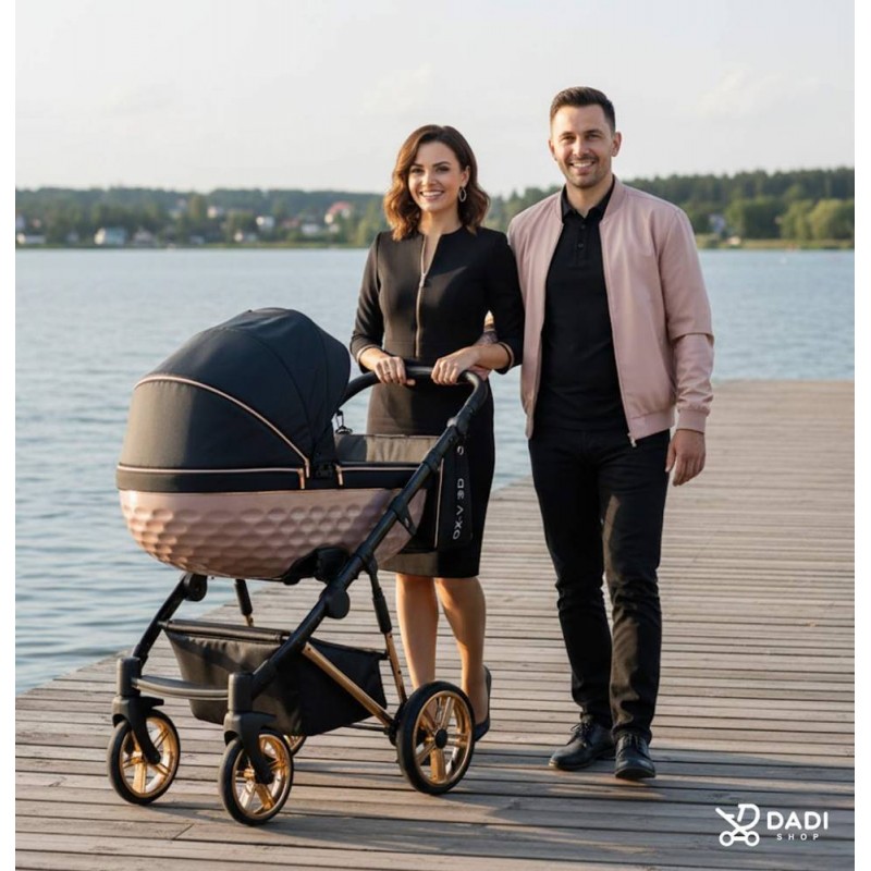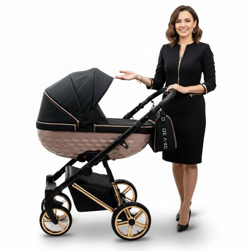 Podkreśl styl i komfort każdego spaceru – Adbor OXV 3D 2w1 w czerni z rose gold łączy elegancję i funkcjonalność dla Twojego maluszka.