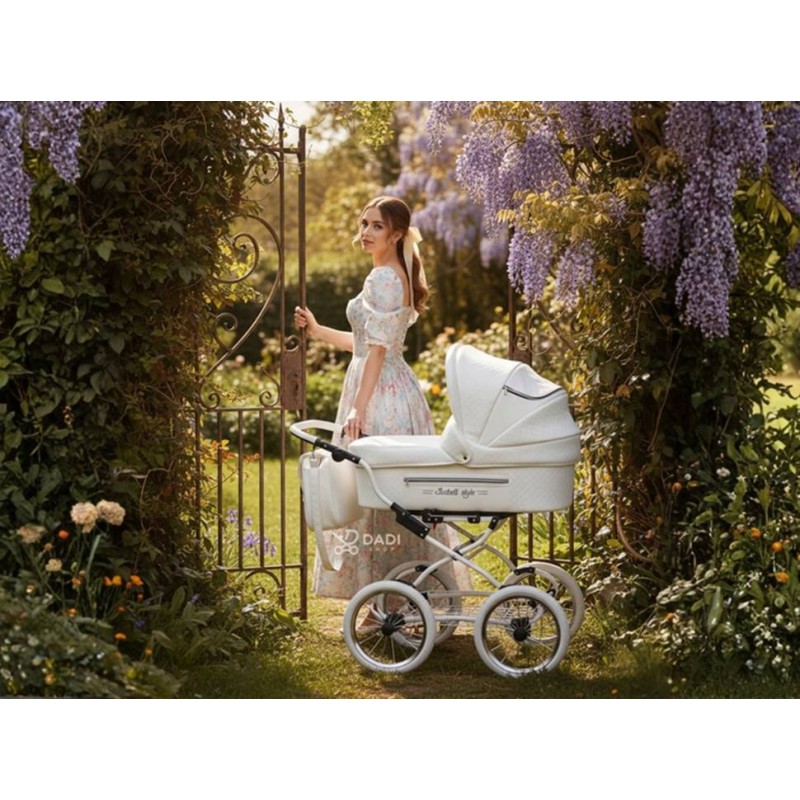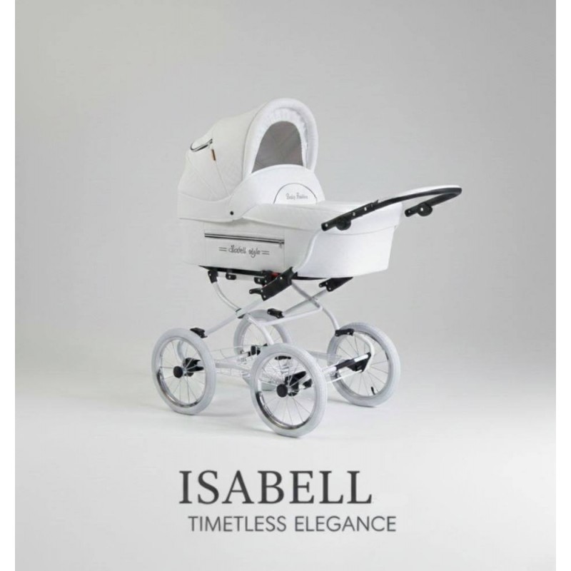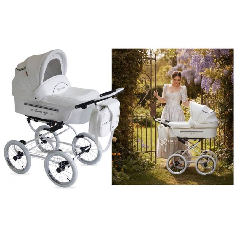 Styl Isabell to ukłon w stronę klasycznych wózków z dawnych lat. Jasna kolorystyka, elegancka linia i duże, pompowane koła sprawiają, że ten klasyczny wózek dziecięcy retro wyróżnia się na tle nowoczesnych modeli. Kolor biały 01 podkreśla jego uniwersalność i subtelny, elegancki charakter – odpowiedni zarówno dla dziewczynki, jak i chłopca.