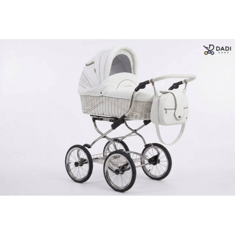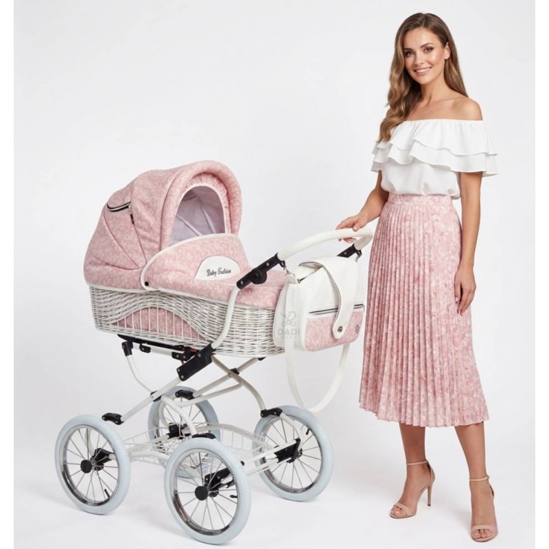 Elegancki wózek retro 3w1 Scarlett na wiklinie – połączenie ponadczasowego designu z pełną funkcjonalnością.