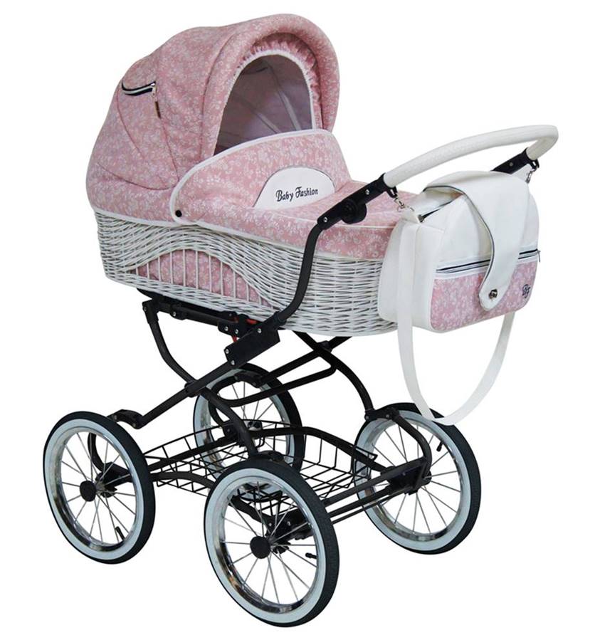 Klasyczny wózek retro z ręcznie plecioną wiklinową gondolą