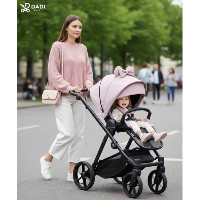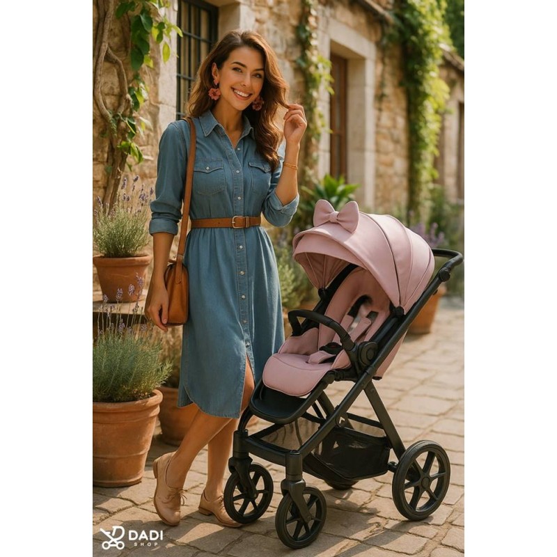 Wózek Natoni Joy New w delikatnym odcieniu Coral Blush z uroczą kokardką to idealny wybór dla małej księżniczki – zapewni wygodę i styl na każdym spacerze!