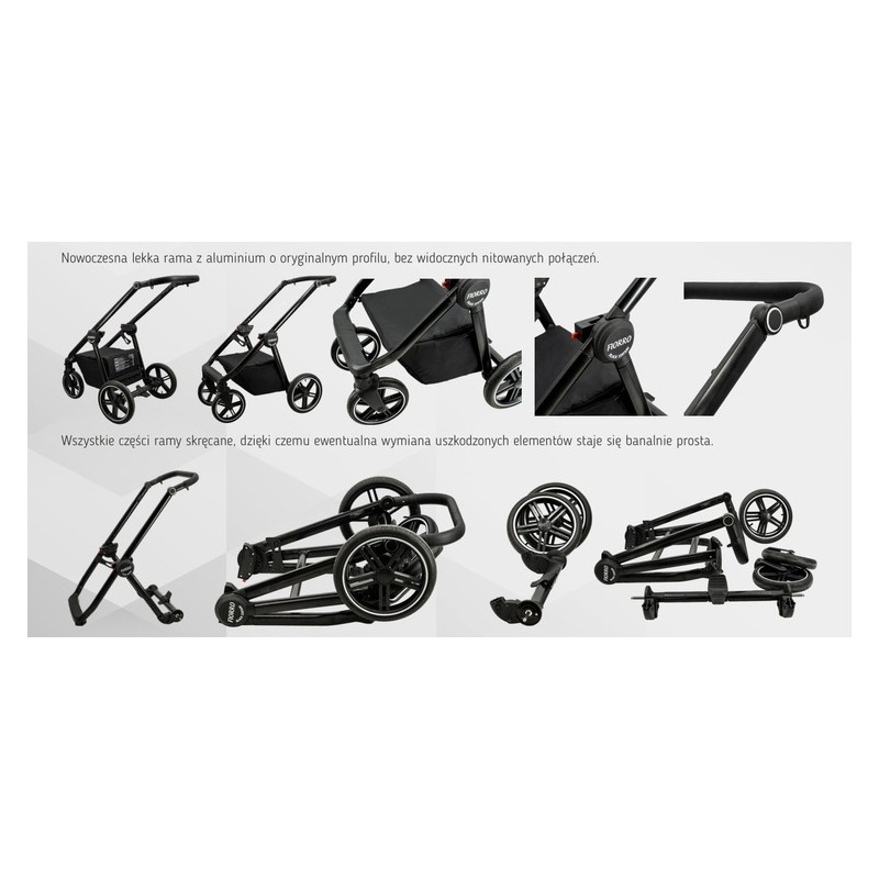 | Elementy zestawu | Gondola, Spacerowa, Akcesoria, Fotelik |