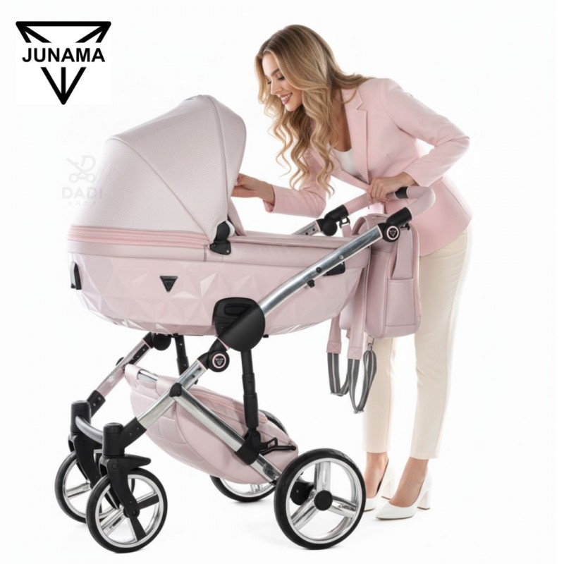 Odkryj luksus codziennych spacerów z wózkiem dziecięcym 3w1 Junama Dolce w pudrowym różu 01 – ekskluzywne wykończenie z tłoczeniem 3D i eko skóry sprawia, że każdy spacer staje się wyjątkowym, stylowym doświadczeniem dla Ciebie i Twojego maluszka. Już dostępny w Dadi-Shop!”