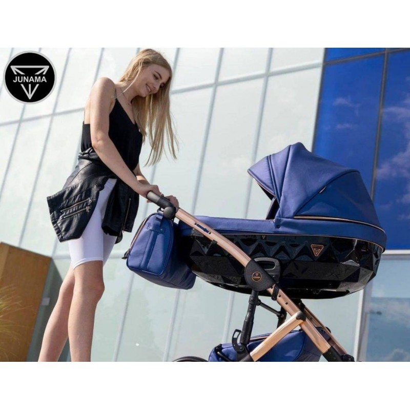 Junama Diamond Fluo Line 01 Niebieski – wózek dziecięcy 2w1, który łączy elegancję, komfort i nowoczesne funkcje. Stylowy design, luksusowa tapicerka z eko skóry i przemyślane rozwiązania sprawiają, że każdy spacer z Twoim maluchem to czysta przyjemność!